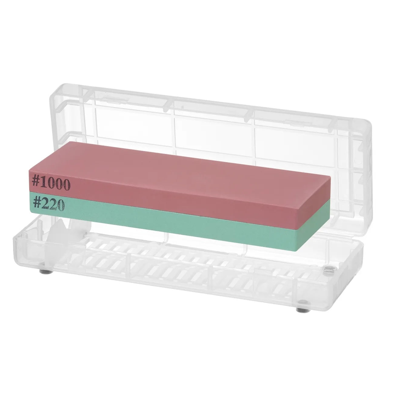 Slibestenen findes i to modeller med forskellige grit-kombinationer, så du kan vælge det sæt, der passer bedst til dine knive og dit brugsmønster. Den grove side (f.eks. 220 eller 1000 grit) bruger du til at genoprette en sløv eller ujævn egg, mens den finere side (f.eks. 1000 eller 3000 grit) bruges til at forfine og polere skæret, så kniven glider let gennem både grøntsager, kød og fisk. Fordelen ved at have to grit-niveauer i én sten er, at du slipper for at købe flere separate slibesten – du vender blot stenen, når du er klar til næste trin i processen.